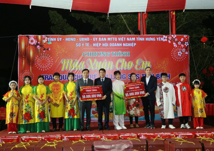 Có mặt tại chương trình, đồng chí Nguyễn Hữu Nghĩa, Ủy viên BCH Trung ương Đảng, Nguyên Bí thư Tỉnh ủy cùng các lãnh đạo Hiệp hội đã trao tặng những phần quà ý nghĩa cho các em nhỏ có hoàn cảnh khó khăn. Thay mặt Hiệp hội, ông Đỗ Văn Vẻ đã trao hỗ trợ 65 triệu đồng cùng nhiều hiện vật thiết thực từ tấm lòng của các doanh nhân. Những nụ cười của các em tại Làng SOS chính là minh chứng cho tinh thần "lá lành đùm lá rách", khẳng định hình ảnh doanh nhân Hưng Yên không chỉ giỏi làm giàu mà còn giàu lòng nhân ái, luôn đồng hành vì an sinh xã hội.