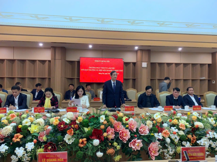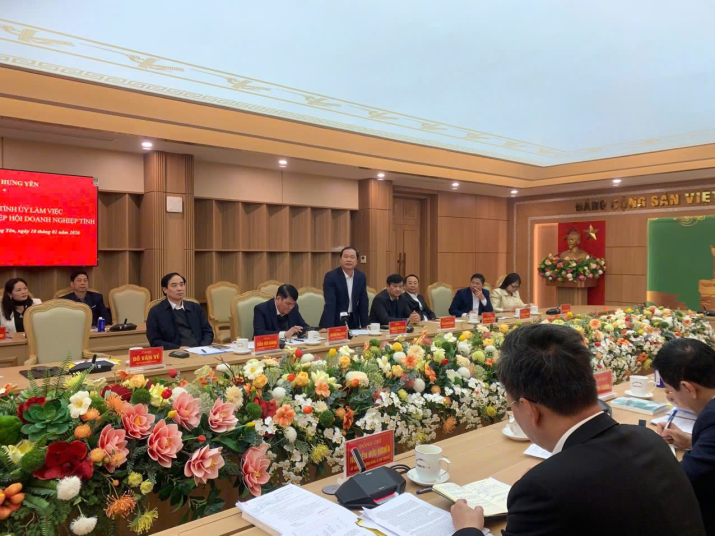 Sáng ngày 10/01/2026, Thường trực Tỉnh ủy Hưng Yên đã có buổi làm việc quan trọng với Ban Thường vụ Hiệp hội Doanh nghiệp tỉnh Hưng Yên nhằm lắng nghe báo cáo tình hình hoạt động và trực tiếp tháo gỡ khó khăn cho cộng đồng doanh nghiệp địa phương.